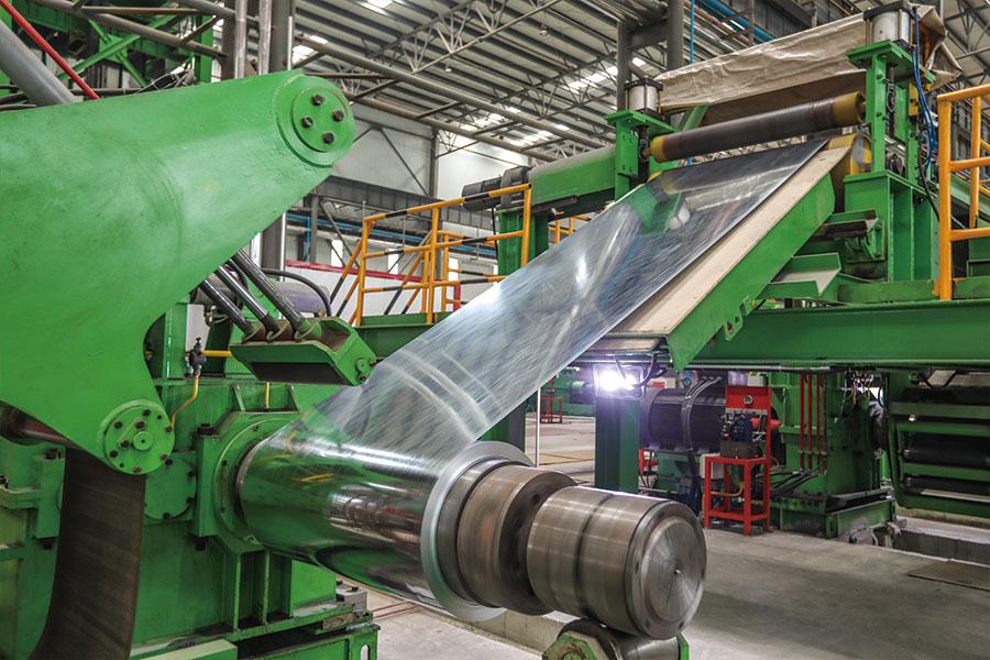 公司擁有4條熱鍍(鋁)鋅機(jī)組,機(jī)組均采用改良森吉米爾工藝。具有良好的在線(xiàn)鍍層厚度控制設(shè)備及各關(guān)鍵工序的質(zhì)量控制手段,保證產(chǎn)品具有優(yōu)良的鍍層控制精度、優(yōu)異的涂覆性能和焊接性。工藝流程是冷軋帶鋼經(jīng)清洗段清洗表面并烘干后,進(jìn)入直接火焰加熱和輻射間接加熱相結(jié)合的改良森吉米爾熱處理進(jìn)行退火及還原,然后在密閉狀態(tài)下進(jìn)入鋅鍋進(jìn)行熱浸鍍,經(jīng)過(guò)氣刀實(shí)現(xiàn)鍍層厚度控制,并經(jīng)鍍后冷卻過(guò)程,獲得鍍鋅帶鋼。 通過(guò)光整機(jī)、拉矯機(jī)改善鍍層表面質(zhì)量和帶鋼的機(jī)械性能與平直度,滿(mǎn)足特定的要求。根據(jù)用戶(hù)要求,后處理段還可以實(shí)現(xiàn)鈍化、耐指紋和涂油處理,最終得到成品鍍鋅卷。