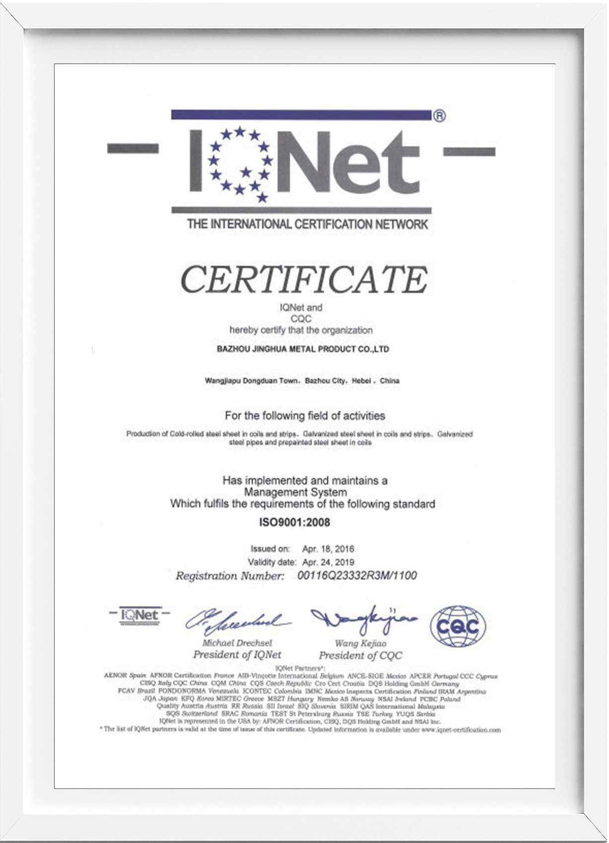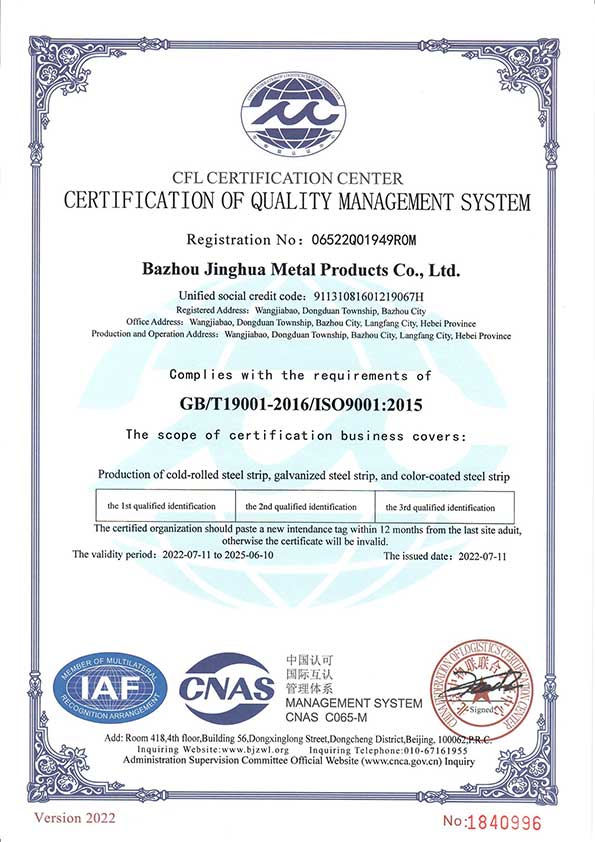 精品彩色鋼板品質(zhì)保證書(shū)