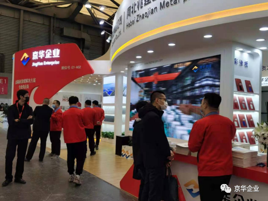 展覽會(huì)上各界人士紛至沓來,京華兆建作為金屬板材涂鍍解決方案專業(yè)供應(yīng)商,在展位上部署了專業(yè)的工作人員,為來往人員進(jìn)行耐心詳盡地講解,并展示高端彩涂板系列產(chǎn)品樣板。京華兆建的生產(chǎn)產(chǎn)品涵蓋精品冷軋板、熱鍍鋅板、熱鍍鋁鋅板、高強(qiáng)結(jié)構(gòu)鋼板、建筑彩涂板、京華精品板、高端彩涂板、醫(yī)院用抗菌彩涂板、畜牧業(yè)用彩涂板、凈化板、家電用彩涂板等多個(gè)領(lǐng)域。展位E1-A02上包括且不僅限于氟碳彩涂板、抗菌彩涂板、高耐候彩涂板等擁有科技專利的高端彩涂板呈現(xiàn)。