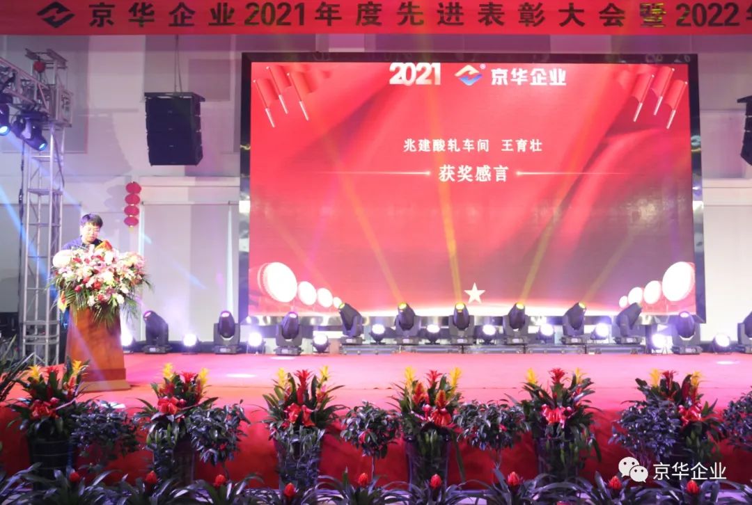 一分耕耘,一分收獲。2021年,一大批愛崗敬業(yè)、自強不息的京華企業(yè)優(yōu)秀員工用實際行動為公司的發(fā)展貢獻了鮮活的力量,也為廣大公司員工樹立了學習的榜樣。本次表彰大會共產(chǎn)生年度優(yōu)秀個人獎項90個、年度優(yōu)秀車間團體獎項4個,獲獎員工及班組代表依次走上領獎臺接受公司領導的鼓勵與嘉獎,公司領導為每位獲獎員工頒發(fā)了榮譽證書及精美獎品并合影留念。最后由優(yōu)秀員工代表京華二部1450軋機車間陳立及優(yōu)秀管理者代表兆建酸軋車間王育壯發(fā)表了精彩、感人的獲獎感言,公司全體員工也為獲獎同事獻上了最真誠的祝福和最熱烈的掌聲。