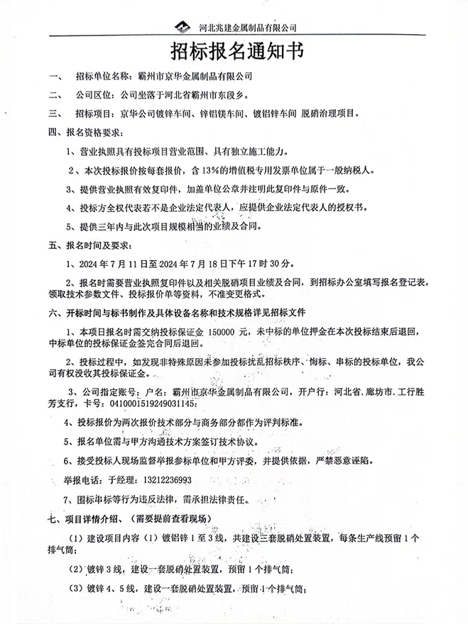 • 招標業(yè)主: 河北兆建金屬制品有限公司