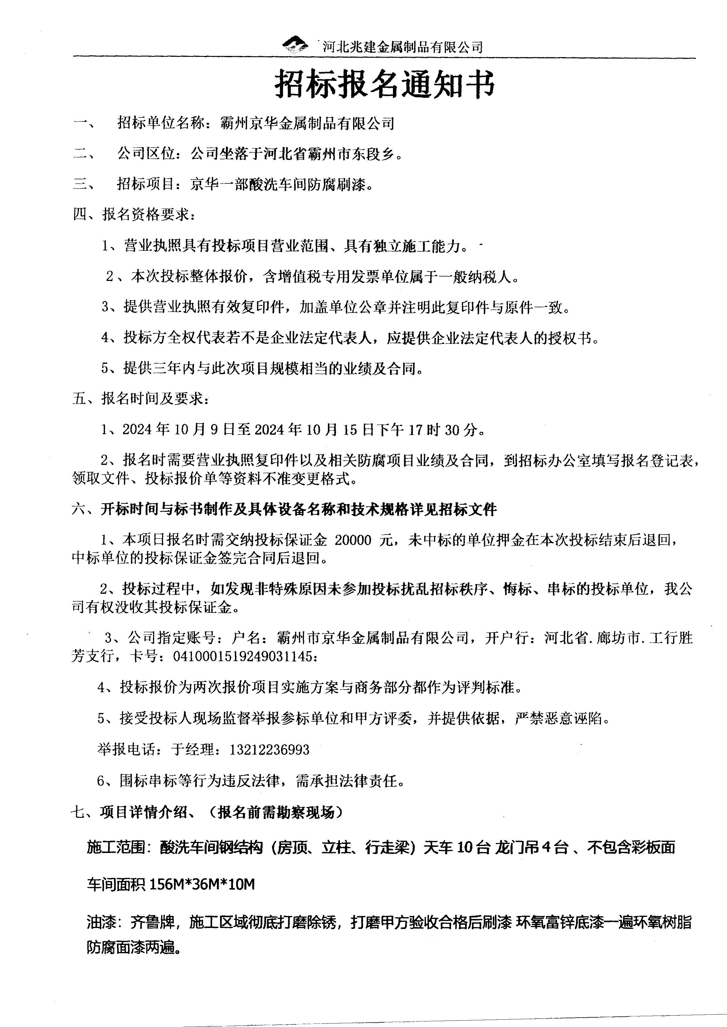 - 招標(biāo)業(yè)主: 河北兆建金屬制品有限公司