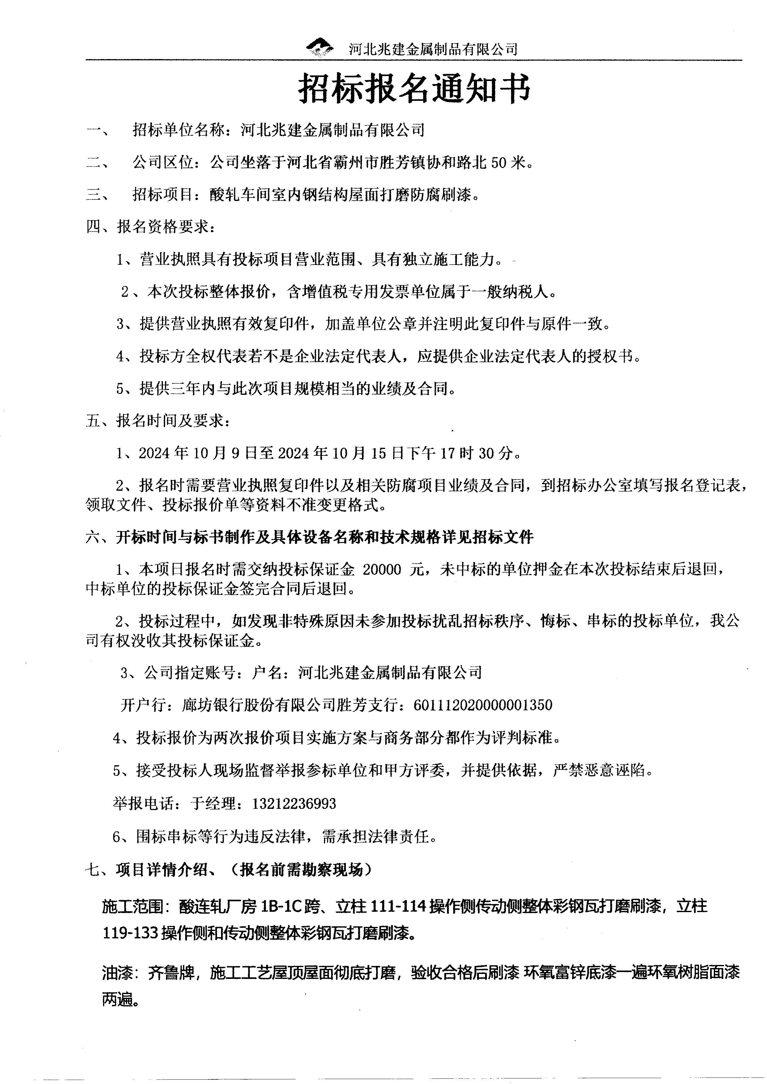 • 招標業(yè)主: 河北兆建金屬制品有限公司