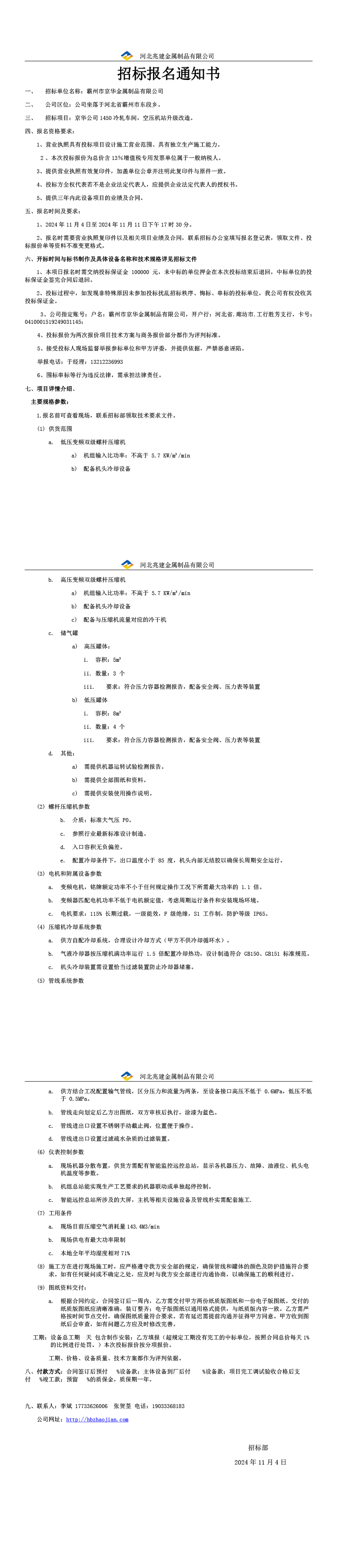 • 招標(biāo)業(yè)主: 河北兆建金屬制品有限公司