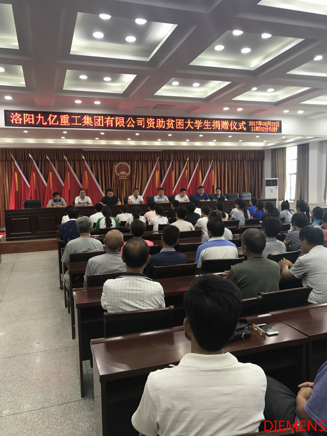 為響應(yīng)洛陽市政府精準(zhǔn)扶貧政策,洛陽九億重工集團(tuán)有限公司及董事長王九茂積極參與捐資助學(xué)的慈善義舉活動,特做出如下決定:1、公司幫扶磁澗鎮(zhèn)2017年新招貧困大學(xué)生21名順利入學(xué),每人資助2000元,總計(jì)肆萬貳仟元整;